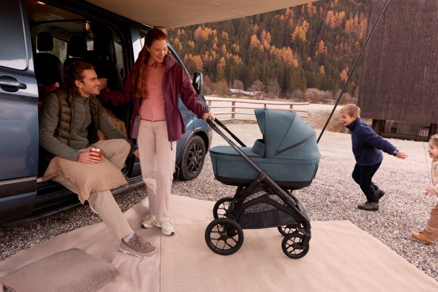 Könnyű APTICA XT Canyon Grey babakocsi adaptív felfüggesztéssel, amely terepre is alkalmas, tágas mózeskosárral, 5 szellőzőablakkal, 1,5 kg-mal könnyebb vázzal nagy kerekekkel és új, állítható, könnyű Darwin Recline EVO R129 hordozóval.