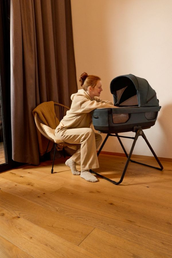- A mózeskosárt a Stand Up állvánnyal használhassa mint baba-mama ágyat, és az anya az ablakon keresztül láthatja a babát.