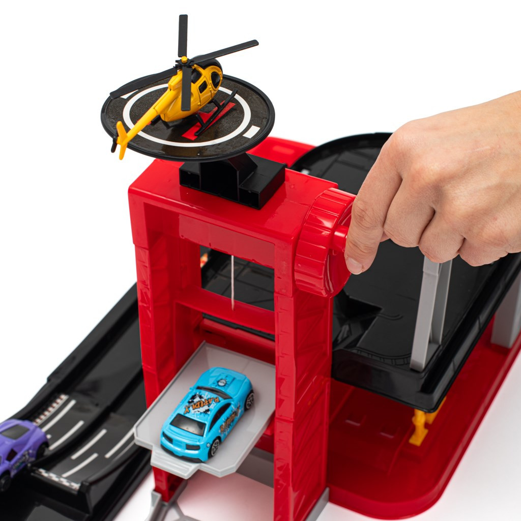 A Baby Mix gyermek parkoló lifttel, benzinkúttal és helikopterrel órákig tartó szórakozást garantál a gyerekeknek. A parkoló méretei: 60 x 33 x 29 cm, ami ideális játékra a padlón vagy az asztalon. Az egész készlet úgy van kialakítva, hogy serkentse a gyerekek fantáziáját, támogassa a finommotoros készségek fejlődését, és biztonságos környezetet nyújtson a játékhoz.
