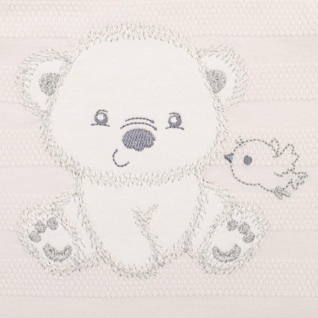 Baba 4-részes együttes Sweet Bear kisbabák számára. Az együttes nagyon jó minőségű kellemes és puha anyagból készült. Hosszú ujjú patentos bodyt, rugdalózót, kabátkát és sapkát tartalmaz. A body teljes hosszában patentos, aranyos maci és madárka képpel díszítve. A rugdalózó aranyos maci és madárka képpel díszítve, vállnál és az ülepénél patentos. A kabátka egyszínű, teljes hosszában patentos. A sapka széles rugalmas szegéllyel rendelkezik. Alakjának köszönhetően a fülek is védve maradnak. A kollekció nagyon kellemes, puha és minőségi anyagból készült, ami kivételes és fontos a baba elégedettségéhez. Az együttes praktikus öko dobozban van csomagolva. Ajándéknak kíválóan alkalmas. Anyag: 100% pamut.