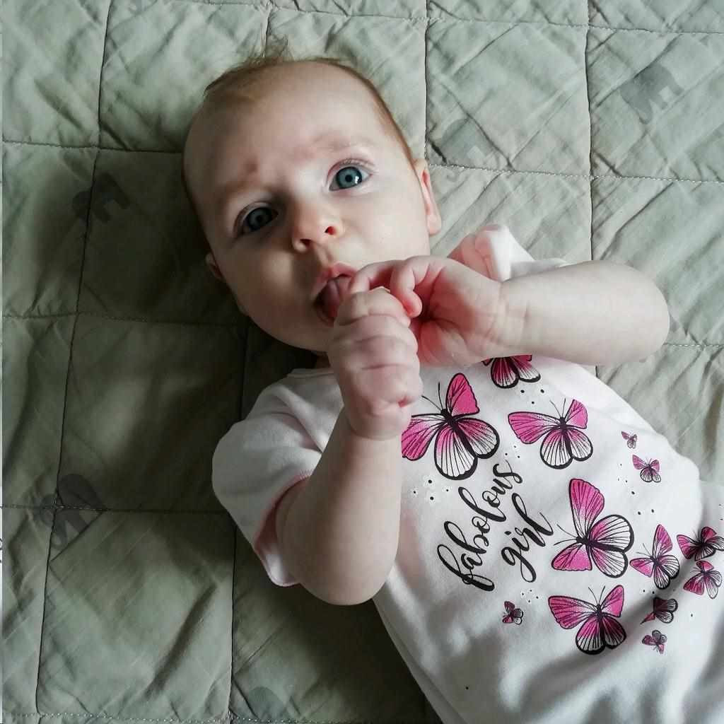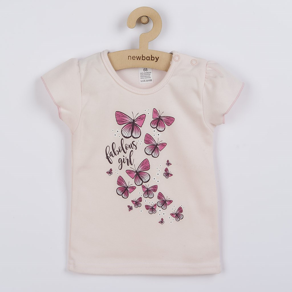 Baba 2-részes együttes New Baby Butterflies, kislányok számára. Az együttes szoknyát és rövid ujjú pólót tartalmaz. A póló pillangó képpel van díszítve. Vállnál patentos. A szoknya fodros és rugalmas gumis derékpánttal rendelkezik. Nagyon kellemes és puha anyagból készült. A New Baby számára a vevői elégedettség nagyon fontos, ezért kínáljuk Önnek az új, kiváló minőségű Butterflies együttest. Anyaga: Póló: 100% pamut, szoknya: 95% pamut, 5% elasztán.