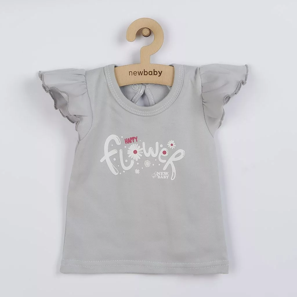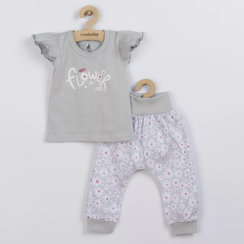 2-részes pamut együttes New Baby Happy Flower szürke