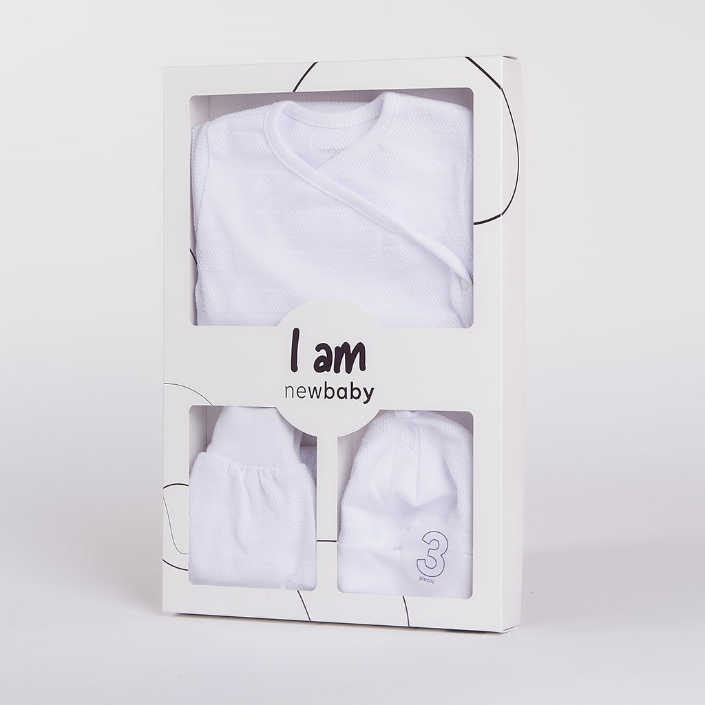3-részes baba együttes újszülötteknek New Baby I AM fehér