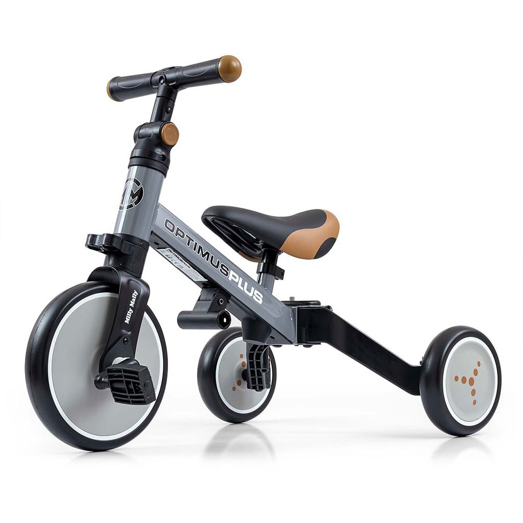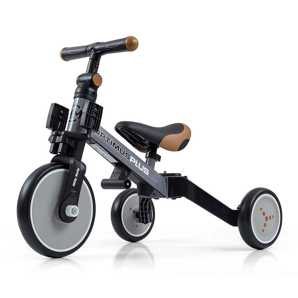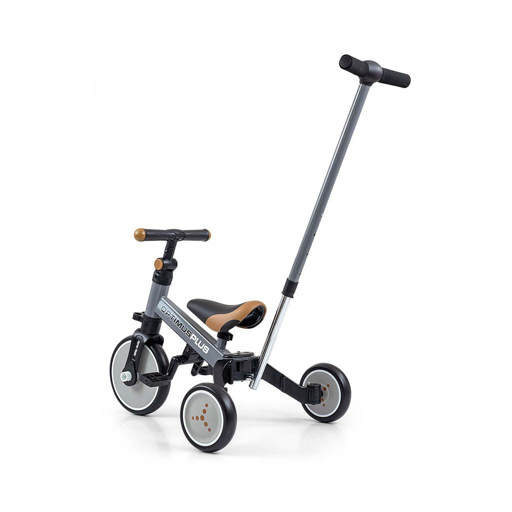 Gyerek háromkerekű bicikli 4az1-ben Milly Mally Optimus Plus tolókarral grey