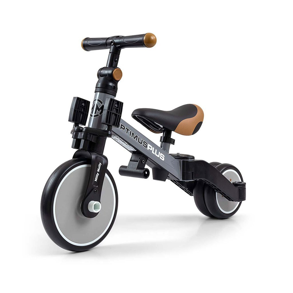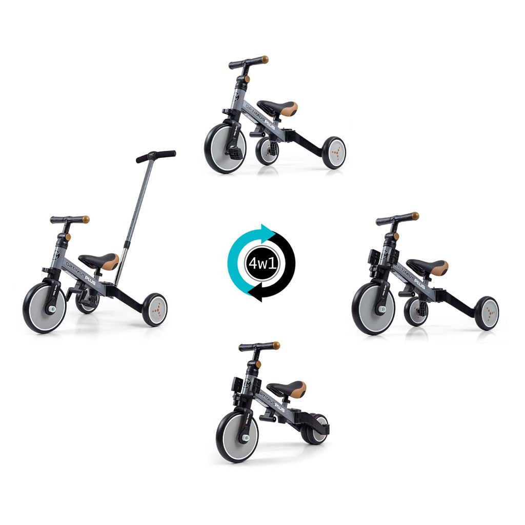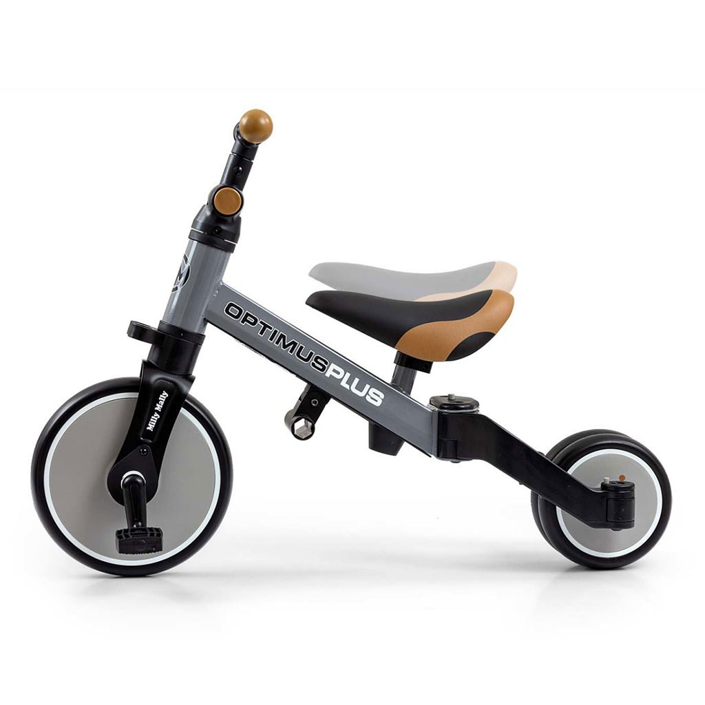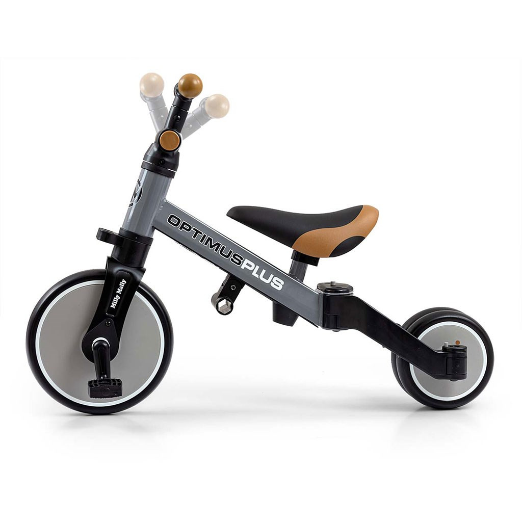 Gyerek háromkerekű bicikli 4az1-ben Milly Mally Optimus Plus tolókarral grey