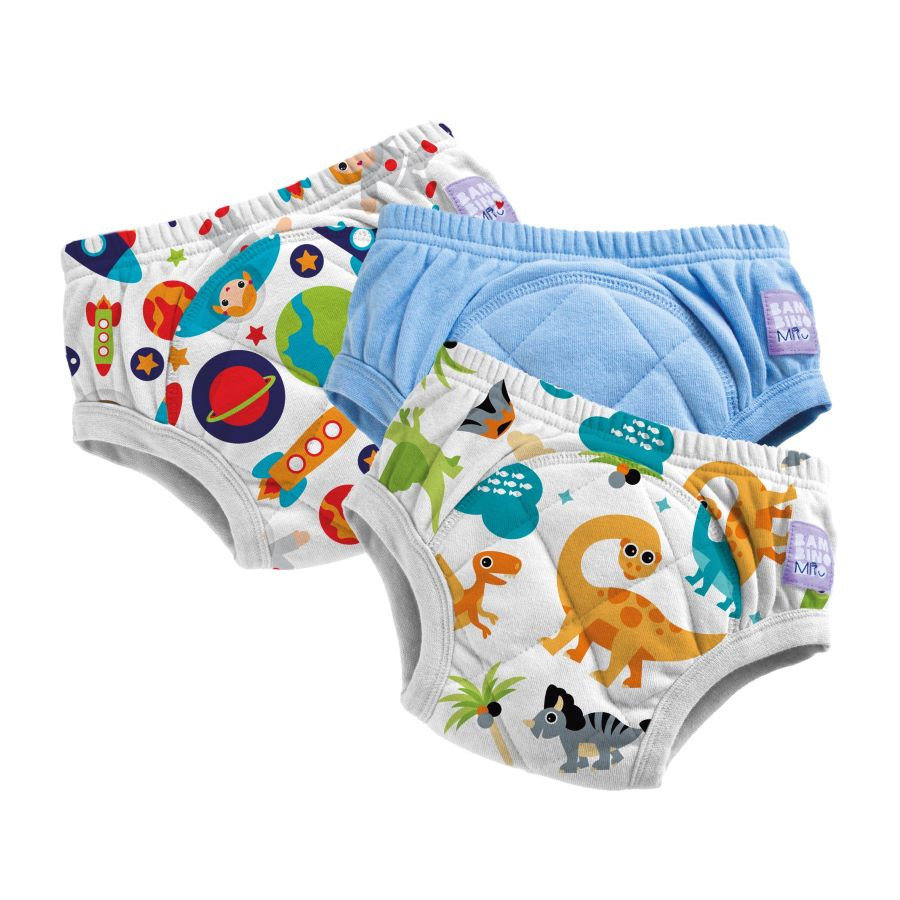 Az át nem eresztő réteg az abszorbens réteggel együtt részben véd a környezet szennyezésétől. Segítenek felgyorsítani a bili edzés folyamatát, de nem helyettesítik a pelenkát. Ajándékba adhatja őket egy gyereknek. Azt az érzést adják a gyermeknek, hogy már felnőtt, és nincs szüksége pelenkára. Ne használja őket, mielőtt a gyermek készen áll a bilire. A leszoktató pelenka tartalmaz egy nedvszívó réteget, amely kisebb mennyiségű vizeletet képes felfogni, de nem helyettesíti teljesen a többrétegű pelenkát a bugyival. Olyan gyerekeknek készültek, akik már átszoktak a bilire, de időnként kellemetlen baleseteik vannak. A leszoktató pelenkában azonnal érzi a nedvességet, felismeri, és felülhet a bilire. Éjszakára vagy alvásra ne tegye a gyerekre a leszoktató pelenkát, és ha nincs más lehetősége, tegye bele a leszoktató pelenkába egy másik Bambino Mio többrétegű pelenkát, ami kiegészíti a nedvszívó képességet. A leszoktató pelenkát az első használat előtt legalább kétszer mossa ki.