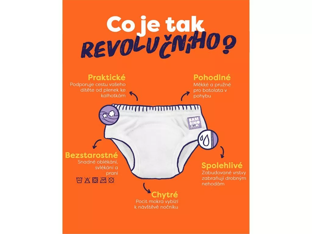 A forradalmi leszoktató pelenka megkönnyíti az átállást a pelenkákról a bugyikra. A pelenkákkal ellentétben a leszoktató pelenkát átöltözés helyett fel- és leveszik, így a baba nagyfiúnak vagy nagylánynak érezheti magát.